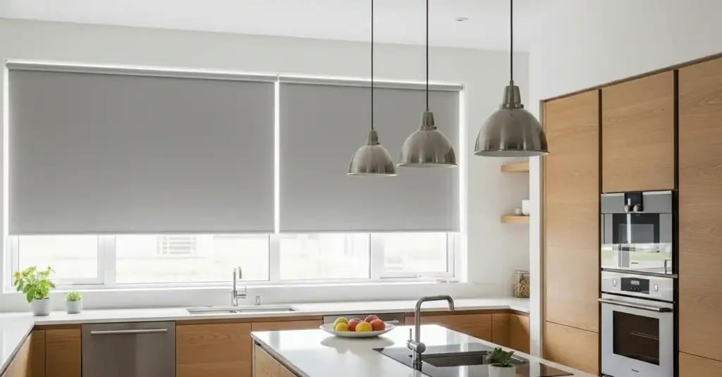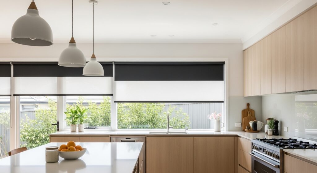 - Match Your Kitchen Style: Modern kitchens pair beautifully with roller or aluminium blinds, while traditional spaces benefit from Roman or faux wood styles.