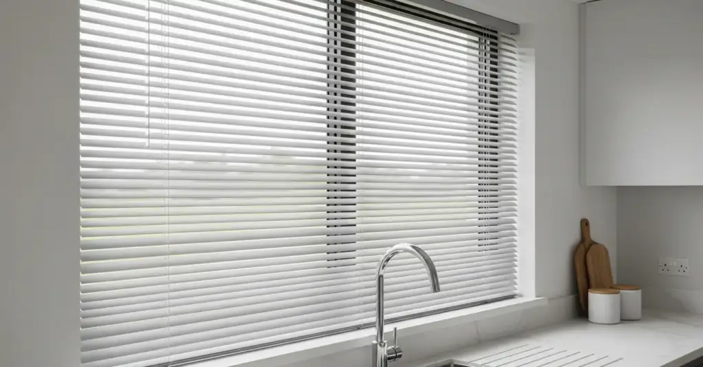 Humidity and temperature changes are common in kitchens. Blinds made from moisture-resistant materials, like aluminium or PVC-based faux wood, won’t warp, crack, or fade over time.