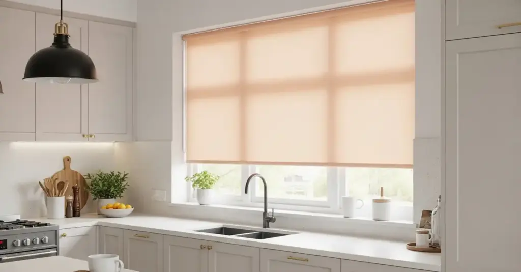 For modern kitchens, opt for sleek roller blinds or neutral Roman blinds (Read here how to properly install Roman Blinds). In farmhouse or traditional kitchens, try linen café curtains or tiered designs with subtle prints.