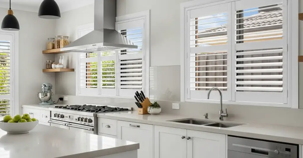 Plantation shutters are especially popular for kitchens because they combine practicality with timeless style. Designed to be moisture-resistant and built to last, they stand up well to the heat and humidity of a busy cooking space. Their adjustable louvres make it easy to control light, privacy, and ventilation, giving you flexibility throughout the day.