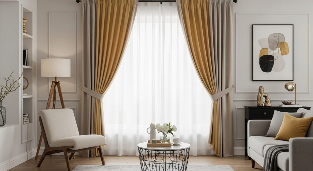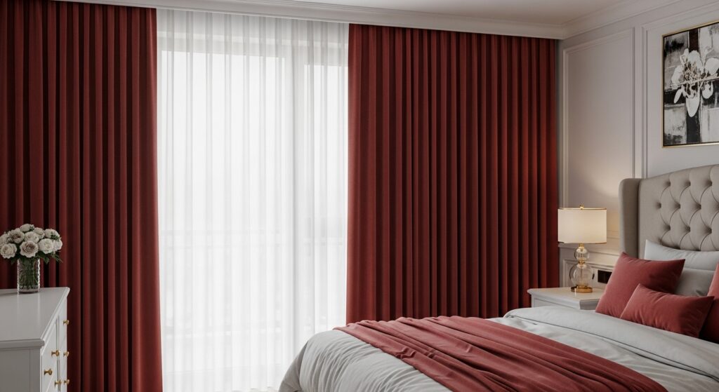 Double curtain setups are perfect for achieving a luxurious, five-star hotel feel at home. Pair lightweight sheers with heavy drapes or blockout curtains for a versatile day-to-night solution.