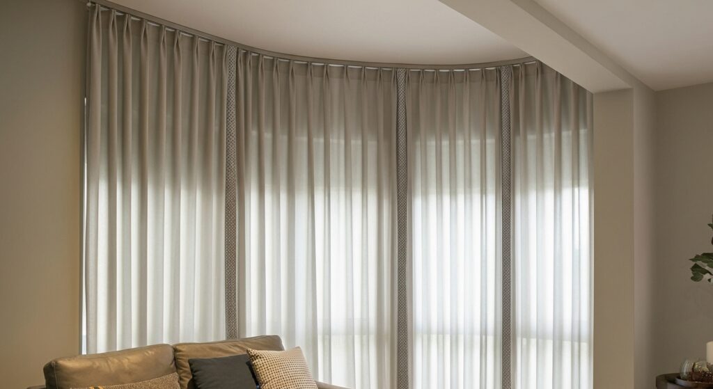 Corner windows are beautiful but tricky to dress. Curved curtain tracks solve this challenge, allowing curtains to glide seamlessly around bends.