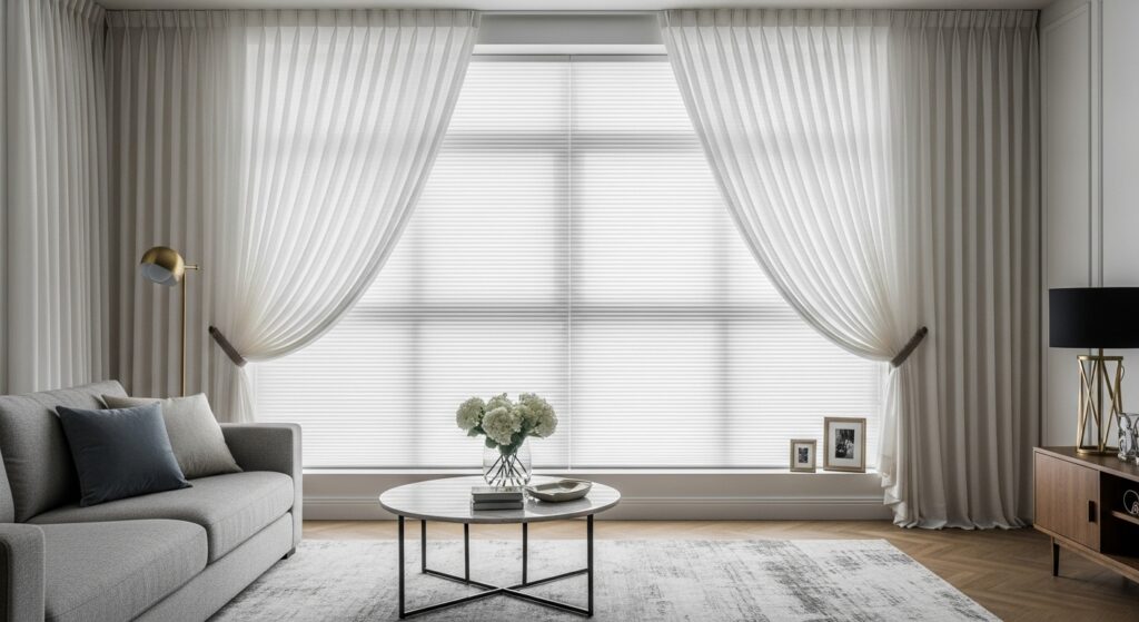 This combination gives you flexibility; the shades can be drawn for function, while the curtains frame the window and add warmth. It’s a go-to design choice for bedrooms and living rooms where you want both beauty and usability.