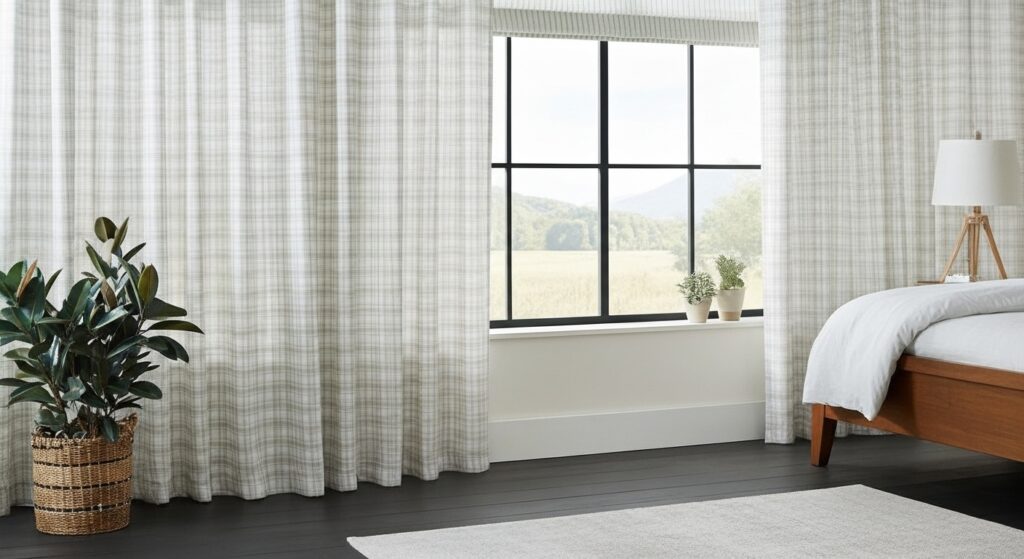 17. Plaid Curtains for Rustic Warmth