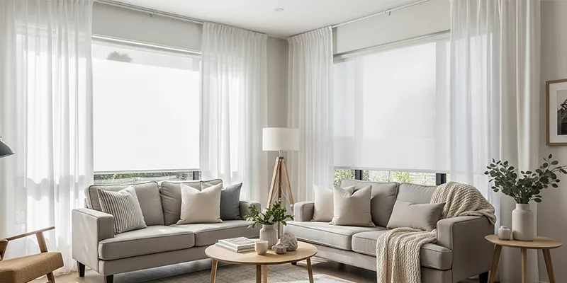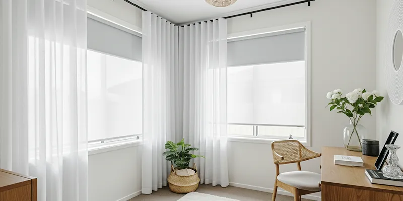 A great combination is sheer curtains layered over roller blinds. The sheers allow light to filter through during the day, while the blinds provide privacy and light control when needed. This dual treatment adds a tactile element and creates a sense of visual richness without making the space feel cluttered.