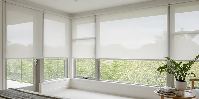 Roller blinds, Roman blinds, and cellular shades are great options for compact areas because they fit snugly within the window frame and roll up neatly when not in use. Their minimalist profiles maintain an uncluttered aesthetic, allowing your furnishings and décor to shine.