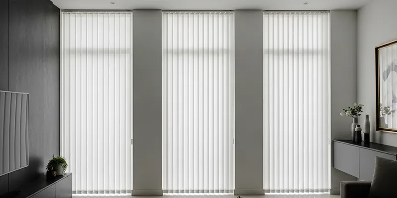 Vertical blinds naturally achieve this effect, offering a sense of height while allowing adjustable light control. For a contemporary twist, panel glide blinds with tall fabric panels provide the same vertical emphasis with a smoother, more modern look.